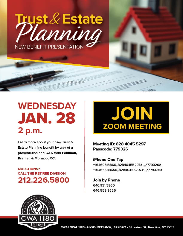 Free | Arthur Cheliotes Conference Room Call the Retiree Division to reserve your spot today: 212.226.5800 | |